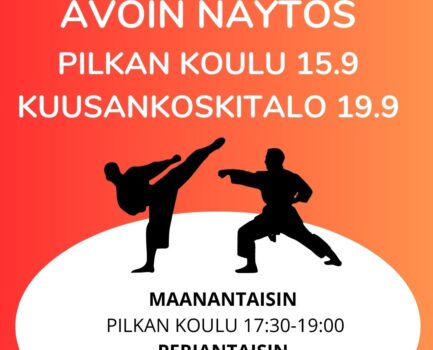 Pilkan koululla 15.9 ja Kuusankoskitalo 19.9 Tervetuloa!